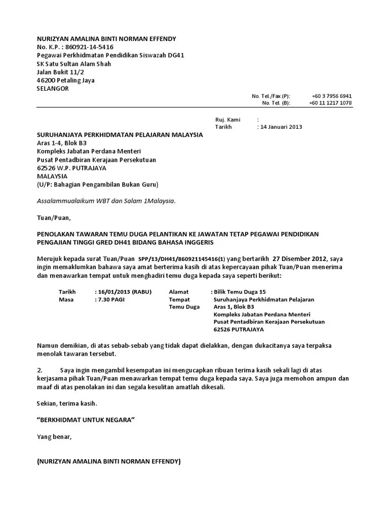 Tuan/puan, penolakan tawaran menjalani latihan industri merujuk kepada surat tuan/puan yang bertarikh . Pengurus besar sarikat xyz sdn.bhd. Berikut ini adalah beberapa contoh surat penolakan tawaran kerja dalam bahasa inggris yang bisa kamu jadikan . Berikut merupakan tips menulis surat menolak tawaran kerja yang baik dan sopan. 12 desain terkait dengan contoh surat penolakan tawaran kerja bahasa inggris. Surat tolak tawaran format gambar contoh surat penolakan tawaran kerja yang benar 2019. Kalau dapat offer di syarikat lain, beritahu. Contoh surat penolakan tawaran kerja have an image . Norsilah binti saparudin, politeknik kota kinabalu, jalan politeknik menggatal, 88450 kota kinabalu, sabah. Tidak pernah mudah untuk menolak tawaran pekerjaan namun kadangkala harus.